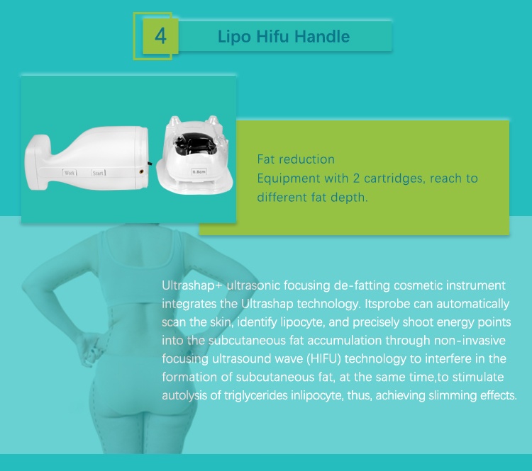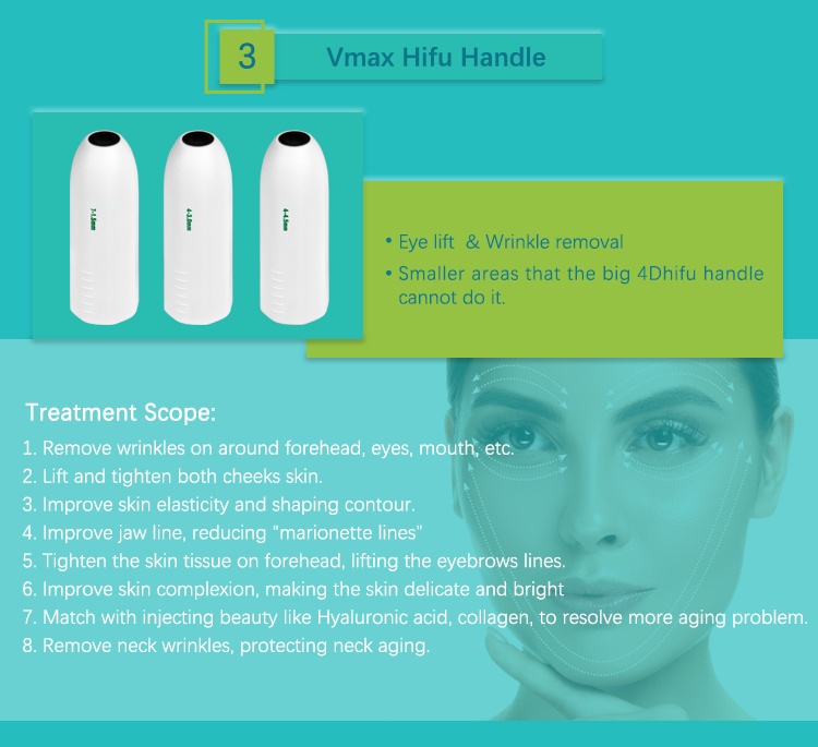 | Standard Cartridges | HIFU with 3 pcs(optional),Vaginal probe with 2 pcs.Vmax probe with 3 pcs(optional),Lipo with 2 cartridges,RF microneeding with 4 pcs |